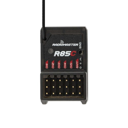 Radiomaster R85C leveres med D16-protokol, som KUN kan bruges på Radiomaster-radioer med multiprotokol, ikke Frsky-radioer. Modtageren leveres med dobbeltantenne og vejer kun 5,5 gram.