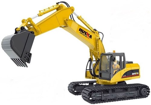 Gravemaskinen har alle funktioner, kører frem, baglæns, højre, venstre, drejer tårnet hele 680 grader, op og ned med skovlen. Den er desuden udstyret med driver, lyd og lys. Lige sjovt for voksne og børn. Gravearmens led kan flyttes individuelt og har blandt andet metalkabine, skovl og hjulnav. Maskinen leveres komplet med undtagelse af 2 AA batterier til radioen.
