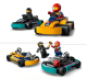 Med LEGO City Go-karts og racerbiler (60400) kan fans af racerbilslegetøj nyde højhastighedsspænding. Børn på fem år og derover kan vælge mellem to førerminifigurer og organisere spændende billøb med den orange og turkise gokart-legetøjsbil.