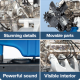 Medfølgende bog medfølger, hvor 60 sider omtaler historien om V8-motoren og Ford Mustang, de resterende sider er detaljerede samlevejledninger. Bogen er på tysk/engelsk. Det færdige resultat er en fantastisk motor, der ser meget godt ud på kaminhylden, monteringstiden er estimeret til at tage omkring 3 timer. Integreret lydmodul, elmotor til rotation, tændingsgnist illustreret med lysdioder og transparent blok giver et godt indblik i V8-motorens funktion.