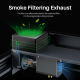 Maskinens røgudstødningsfilter og to køleventilatorer på laserhovedet filtrerer effektivt støv og udstødningsgasser, der dannes under gravering. Efter gravering arbejder ventilatorerne i et minut mere for at forlænge ventilatorens levetid, reducere støj og spare strøm. Filterpatronen har et aftageligt låg for nem fjernelse og udskiftning af filteret.