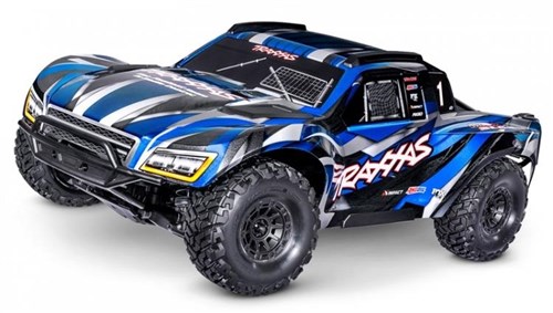 Traxxas her med Slash 4x4 monteret på et robust forlænget Maxx chassis. Maxx Slash er en børsteløs kraftpakke, der kan modstå 6s LiPo og har en tophastighed på 110/km/t! Bilen leveres færdigsamlet med hårdt lakeret karrosseri og den kommer med en TQi 2.4G sender. Bilen er stor og kraftfuld, vejer 5,4 kg og er hele 67 cm lang! Denne udgave indeholder også Traxxas geniale clipless krop, bæltedæk for at nævne nogle få.