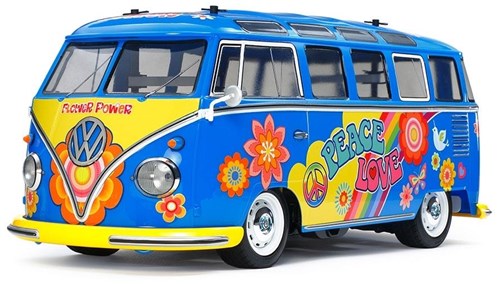 Tamyia byggesæt af en Volkswagen Type 2 med Flower Power karosseri på M-05 chassis. Modellen leveres med formalet krop, 540 børstemotor og udførlig engelsk monteringsvejledning.