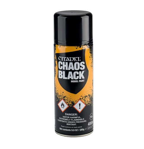 Citadel Chaos Black Spray er lavet til at basecoat miniaturefigurer af plast, harpiks og metal. Omformuleret for maksimale resultater, med en fantastisk sort farve, er det en hurtig måde at få en jævn farvegrundlag på dine modeller.. 400ml