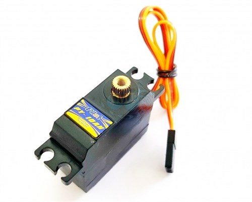 Pilot med en mini servo med 13,1 kg kraft og 0,19s hastighed ved 7,4V. Servoen vejer 37g og har målene 35x15x29,2mm. Leveres med metalgear og 25T Futaba spline og plast servohorn, skruer og gummipuder.