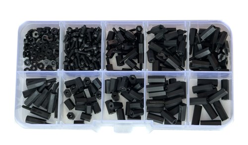 80 Stk møtrik M280 Stk. Skruer M2x10mm20 Stk afstandsstykker han-hun 6 mm standoff + 6 mm tap, M220 Stk afstandsstykker han-hun 8 mm standoff + 6 mm tap, M220 Stk afstandsstykker han-hun 10 mm standoff + 6 mm tap, M210 Stk afstandsstykker han-hun 12 mm standoff + 6 mm tap, M220 Stk Afstandsstykker Hun-Hun 6mm, M220 Stk Afstandsstykker Hun-Hun 8mm, M220 Stk Afstandsstykker Hun-Hun 10mm, M210 Stk Afstandsstykker Hun-Hun 12mm, M2