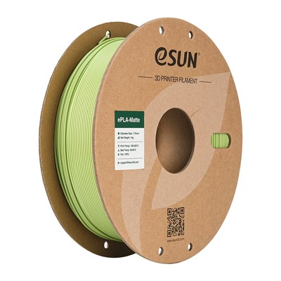 ePLA fra eSUN med en mat overfladefinish. Den er stærkere end almindelig PLA med bedre lagbinding. Printer som almindelig PLA og giver nemt gode resultater. Filamentet giver glatte og fine overflader, lille mulighed for krympning og lidt snoring.