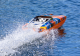 Båden er helt færdig i æske med ror og propel samlet, mærkater er på og radioen er klar til brug! Med 2 x 2s LiPo-batterier har båden en topfart på ca. 60 km/t, men skifter du til 2 x 3S LiPo er topfarten hele 80 km/t.