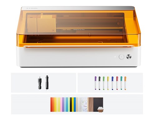 OKDet er en lasermaskin, en stansemaskin, en skriver og en tegnerobot. Et studio som dekker nesten alle håndverksbehov. Du kan gjøre stort sett alt med en enkelt enhet!