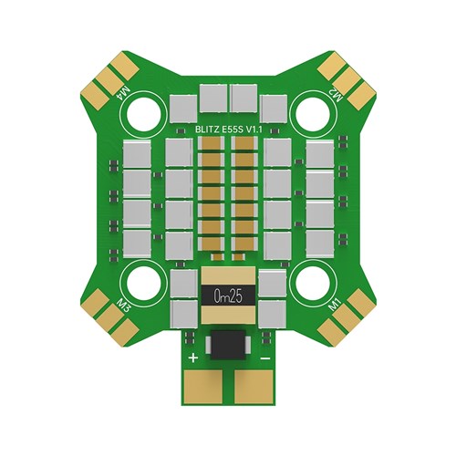 iFlight Blitz E55S 4in1 ESC leveres her med 20x20mm monteringshuller og kan bruges på LiPo 2-6s. ESC vejer 11,3 gram og leveres med strømkabler og et sæt ESC signalkabler.