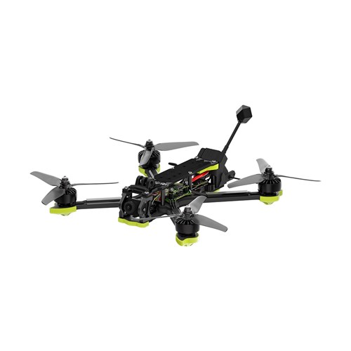 Dronen er fuldt bygget, men før du kan flyve skal du bruge et batteri, en kompatibel oplader, FPV-briller og en ELRS-kompatibel sender.