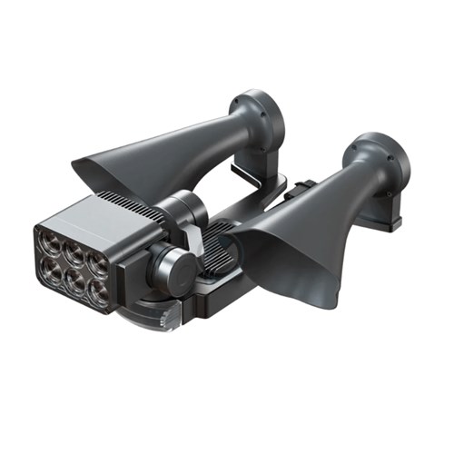 LP35 er en 3-i-1-løsning, der indeholder blinkende lys (rød og blå, rød eller blå). Ud over dette er LP35 en højttaler og spotlight.