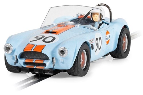 Shelby Cobra - Gulf er en racerbil i skala 1:32 og beregnet til brug på Scalextric analoge 1:32 racerbaner eller tilsvarende racersystemer. Bilen kan konverteres digitalt ved hjælp af Digital Chip og Digital Plugg, C7005.