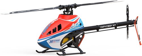 OMP Hobby M7 helikopteren er en rigtig hot 3D maskine i 700 størrelse! M7 har mulighed for at bruge op til 715 mm vinger og har en flyvægt på ca. 5,3 kg. Dette er KIT-versionen, der leveres med Rotortech hoved- og halerotorblade.