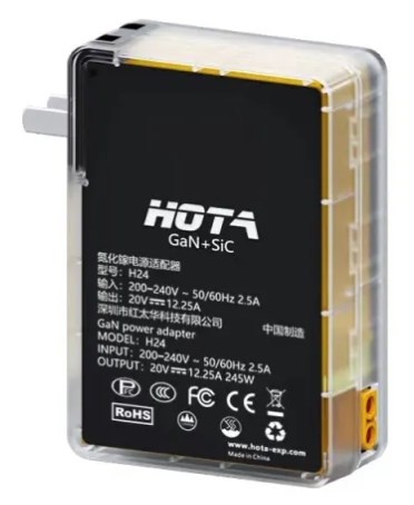 Hota her med en kraftig strømforsyning lavet med GaN og SiC. Perfekt som strømforsyning til pcer, droneopladere, loddekolber mm. H24 anbefales til brug med Hota P24, som giver dig USB-A og USB-C stik. H24 sættes nemt i væggen med det medfølgende vægstik. Strømmen udsendes via et integreret XT60-stik.