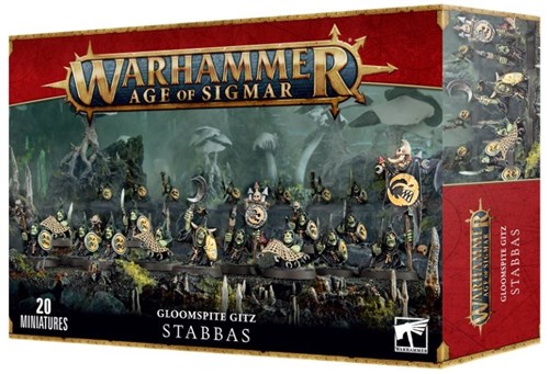 Moonclan Stabbas danner uregelmæssige rækker, der rykker frem mod fjenden med gongonger og flag. Deres øjne buler af Gloomspite-vanvid, de hælder ud over fjendens linjer og hugger vildt på alt på deres vej.