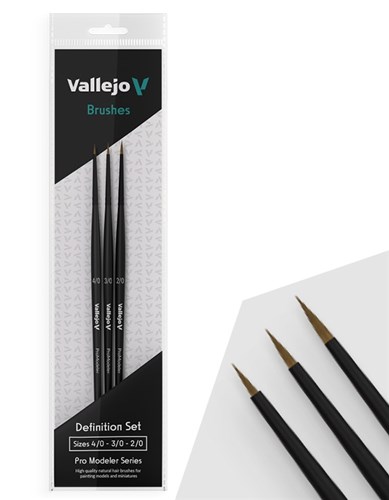 Pro modeler børster med definition sæt, runde børster lavet af premium naturligt hår. Dette giver optimal fleksibilitet, glatte og flydende frakker samt langvarig slidstyrke. Et sæt med tre pensler designet til præcisionsarbejde og maling af små detaljer. Indeholder størrelserne 4/0, 3/0 og 2/0.