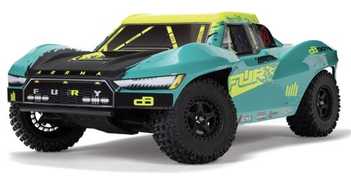 ARRMA Fury 223S BLX 2WD i skala 1/10 kortbane/bashing bil. Du får høj hastighed, 2-hjulstræk og responsiv elektronik. Udstyret med SLT 2-in1 45A ESC og modtager, 4000Kv børsteløs motor og Spektrum SLT2 2-kanals 2,4GHz radio. Bilen er designet til at kunne køre på 2S og 3S LiPo batterier og opladere medfølger ikke og skal købes separat.