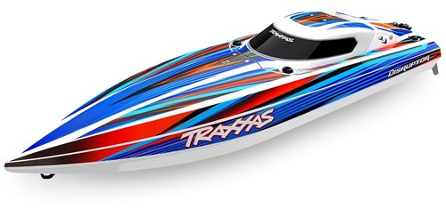 Traxxas her med Disruptor SR! Denne 66cm lange båd har en topfart på 65km/t+ og kommer med Traxxas "Self righting", som hjælper dig, hvis du er så uheldig at ende på hovedet. Båden kommer med Traxxas VXL-4S system som er naturligt børsteløst! Disruptor kommer færdigmonteret med elektronik og radio, du skal bruge AA batterier, kørebatteri og kompatibel oplader.