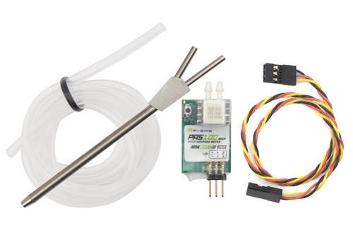 Frsky her med en spændingssensor, der understøtter FBUS og er S.Port-kompatibel. PAS100 ADV-sensoren kan bruges til at måle luftfart i hastighedsområdet 0 - 360 km/t.