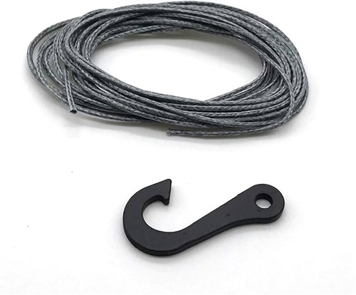 Denne pakke indeholder 210 cm syntetisk spiltov med 1 mm tykkelse. Leveres med laserskåret krog. Rebet kan tåle tæt på 100 kg.