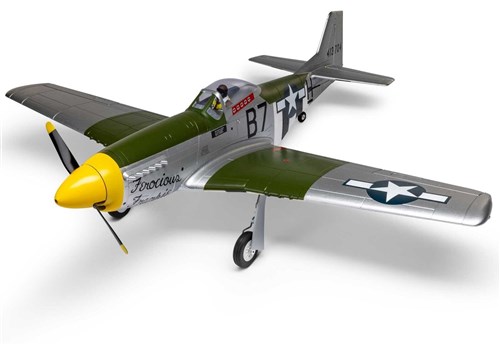 The E-flite P-51D Mustang 1.0m is a "sport scale" replica of the most popular and iconic fighter aircraft ever! Inspired by the original ParkZone "Ferocious Frankie" and "Gunfighter" models and as a taildragger alternative to the extremely popular E-flite T-28 1.1m, it?s designed from the ground up to be a smaller and more affordable alternative to larger "full-house" P-51 models because not everyone is ready for the complexity of flaps and not all fields are suitable for retractable landing gear. But it?s also larger so it?s easier to see and can handle flying in more wind than smaller micro and ultra-micro class models - yet can still be flown at large parks and sports fields while being easy to transport without disassembly. This makes it a perfect first-ever low-wing, scale, and warbird model for low-time pilots who have mastered a trainer and no-hassles everyday sport scale model for experienced pilots. The BNF Basic version is equipped with enhanced AS3X+ technology that smooths out the effects of wind and turbulence better than ever before, and is also equipped with optional-use SAFE Select technology that makes it even easier to fly! And both versions include Spektrum digital, metal-geared servos, a 30A telemetry-capable ESC, plus a 3S and 4S compatible motor.