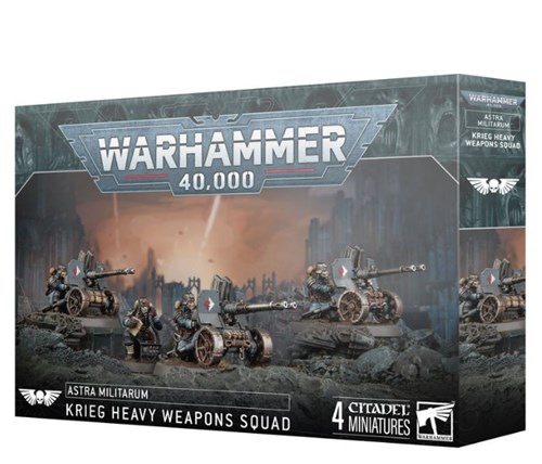 Dette flerdelte plastiksæt bygger en Krieg Heavy Weapons Squad, bestående af tre Heavy Weapons Gunners og en Fire Coordinator, til brug i dine Astra Militarum-styrker i Warhammer 40.000.