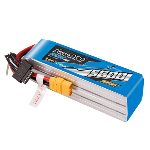 6s 5600mAh - 80C - Gens Ace Sport HV G-Tech XT90. Batteriet leveres komplet med XT90 batteristik og G-Tech XH balancestik. Størrelsen er 193x46x47mm. Velegnet til større helikoptere, biler og fly. Sport-serien er batterier med god ydeevne og fokus på vægt. Batteripakken vejer 745,3g og er af typen 6S HV (22,8V).