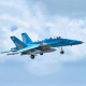 Der medfølger en 64mm EDF blæser med børsteløs inrunner motor som giver en masse power (2840 3150KV) og den er udstyret med en 12 blade blæser som giver en fantastisk lyd. Ydermere kommer den med 5 stk 9g digitale servoer og 40A ESC. F-18 har også en pilot, missiler og navigationslys, hvilket gør den endnu mere skala!