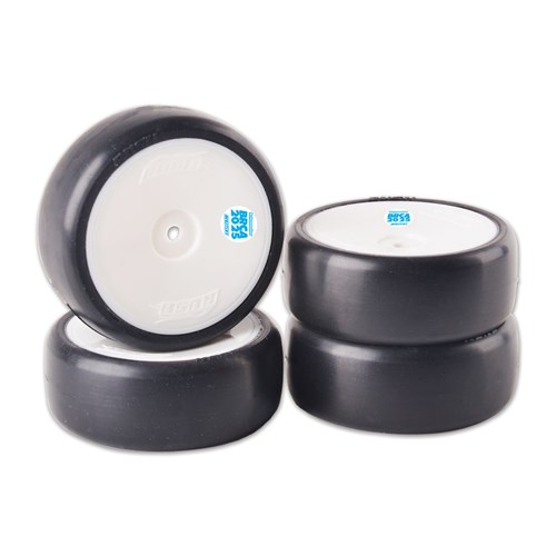 Rush 2025 udendørs asfalt helårsdæk. Designet til 1/10 skala biler, ideel til brug på blandt andet udendørs asfalt. Inkluderer 4 forlimede dæk på fælge. 2025-versionen er identificeret med et blåt klistermærke på fælgen