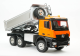 Komplet lastbil i skala 1:14 med metalplatform og kabine og 14 funktioner. Modellen kører fremad/bagud med firehjulstræk og drejer til højre/venstre og har skalalignende kipning af ladet. Modellen har også lys og lyde ud over en detaljeret førerkabine. Lige så sjovt for voksne som for børn. Maskinen leveres komplet med undtagelse af 4 AA-batterier til radioen.
