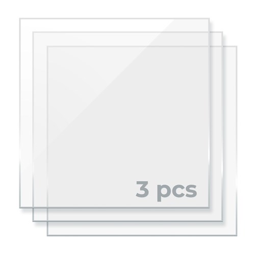 Pakke med 3 stk. 3 mm akrylplader i størrelsen 300 x 300 mm, der er nemme at skære og bearbejde med xTool CO2-laseren. Længde og tykkelse kan variere en smule.