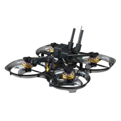 Denne FlyLens-version leveres præbygget med 1003 14800KV motorer til 2S LiPo-opsætning. Det er en præsamlet stak med FC og ESC, som du kan tilslutte en DJI O4 Air Unit eller en naked O3 Lite-enhed til. Den leveres med propeller, kamerabeslag til O3 og O4, 3 batteriholdere til 550, 750 og 1000 mAh. Batteristikket er XT30.