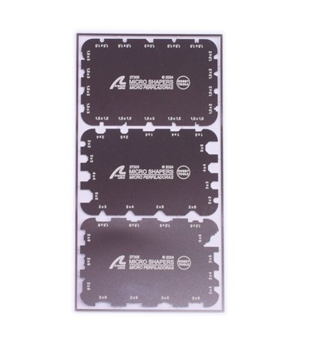 These Micro Shapers B are the perfect tool for molding all kinds of miniatures: boats, buildings, dollhouses... 2 different sets of micro shapers (sold separately A and B) that belongs to the Micro Tools Collection: each one has 3 plates with 15/16 different shapes per plate. The tool works by drawing the shape along a strip of wood or plastic.