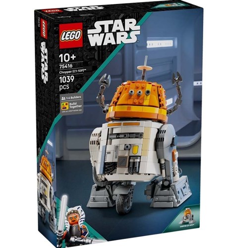 Med denne bygbare LEGO Star Wars legetøjsmodel (75416) kan børn bygge en sjov udstillingsmodel af den populære astromech-droide Chopper (C1-10P). Denne realistisk detaljerede Chopper-byggefigur fra Star Wars: Ahsoka er en sød fødselsdags- eller julegave til piger, drenge og fans fra 10 år og opefter. De kan bevæge håndtaget på hans ryg for at aktivere Choppers ikoniske hovedbevægelser, placere hans arme og ben i forskellige stillinger, tabe et værktøj fra brystet og meget mere. Choppers arme og midterhjul kan fjernes, så det ser ud som om, de er blevet trukket tilbage i hans krop.