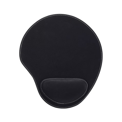 Sort musemåtte i kunstlæder lavet til lasergravering. Det sorte læder bliver skinnende sølvfarvet, når det graveres med en diodelaser.