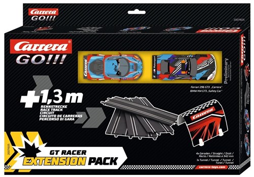 Gør din racerbane mere spændende med Carrera-udvidelsespakken i skala 1:43, der passer til Carrera GO!!! og GO!!! Plus. Kassen indeholder 4 rækkebiler af typen 61602, BMW M4 GT3 og Ferrari 296.