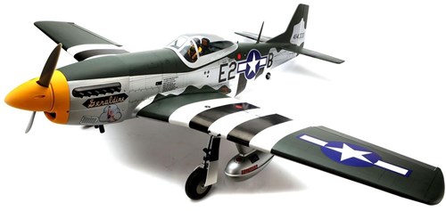 Denne model er en detaljeret og robust model i 1/6-skala af det ikoniske fly, Mustang P-51D. Med letvægtskonstruktion i laserskåret balsatræ og finer samt en elegant satinfinish med præcise panellinjer og stencils udstråler den autentisk krigshistorie. Flyet har et 3D-instrumentpanel og en håndmalet pilotfigur - du kan vælge mellem de klassiske "Geraldine"- eller "Sky Bouncer"-klistermærker. Det leveres med et robust fast landingsstel bestående af store hjul og stødabsorberende stivere, der gør landinger på græs meget nemmere. En anden fordel er, at modellen er "retract-ready": du kan nemt opgradere med elektrisk indtrækkeligt landingsstel. Flyet har også funktionelle flaps.