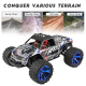WLtoys monstertruck er en kompakt og brugervenlig model, der gør det nemt at komme i gang med RC-hobbyen. Den giver dig en god kombination af fart og kontrol, med en justerbar tophastighed på op til 35 km/t og firehjulstræk, der sikrer stabilitet på forskellige overflader. Det stilfulde karrosseri har indbyggede LED-lys, der gør kørslen ekstra sjov. Leveres komplet med sender, genopladeligt batteri og oplader!