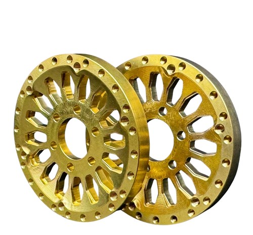 Reefs RC - 1.9 Shield Wheel Face - Messing (2 stk.). Messingfronterne vejer 39 gram og giver ekstra vægt lavt på bilen - perfekt når du har brug for lidt ekstra for at komme over forhindringen foran dig.