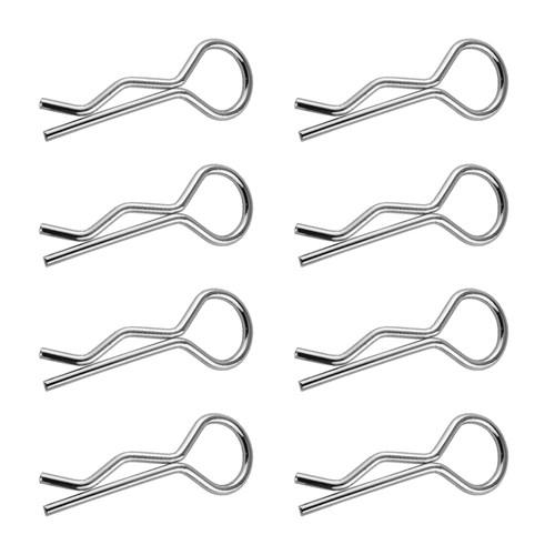 Karrosseriklips egnet til mellemstore bilmodeller; 1:8, 1:10, 1:12. Bronto-kvalitetsclips leveres i pakker med 8. Disse karrosseriklips har en diameter på 1,2 mm. Hver klips har en lille bøjning i hovedet, så det er nemmere at få fat i dem, når de sættes på/af.