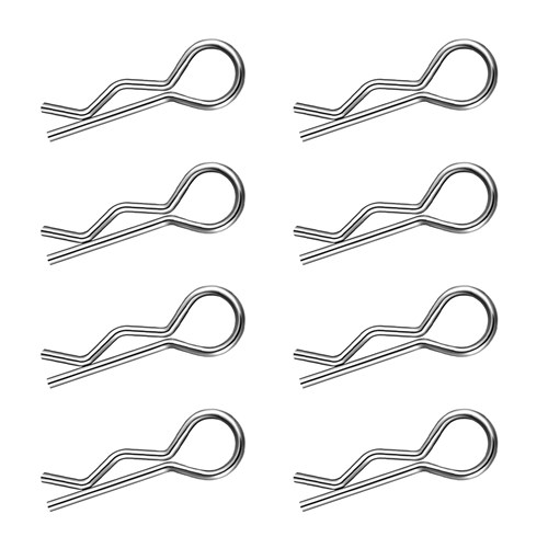 Karrosseriklips egnet til mindre bilmodeller; 1:14, 1:16, 1:18, 1:24. Bronto-kvalitetsclips leveres i pakker med 8. Disse karrosseriklips har en diameter på 1 mm. Hver klips har en lille bøjning i hovedet, så det er nemmere at få fat i dem, når de sættes på/af.