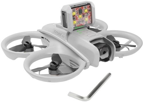 DJI Spotlight fra Firehouse er designet til DJI NEO. Den er helt fritstående og giver mulighed for at justere lyset fremad eller vinkle det opad for strobelys under natflyvninger efter behov. Lyset er af ARC V-typen og giver hvidt strobelys.