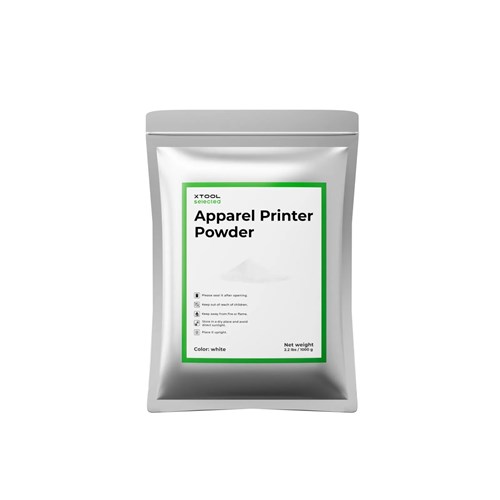 XTool Selected Apparel Printer Powder klæber til blækket i stedet for filmen, hvilket resulterer i klare og levende farver og udskrifter i enestående kvalitet.