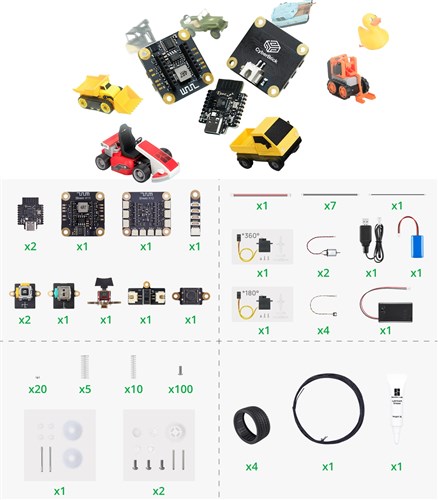 Bemærk: Sættet indeholder kun elektroniske moduler. 3D-printede dele og værktøjer er ikke inkluderet i leveringen.