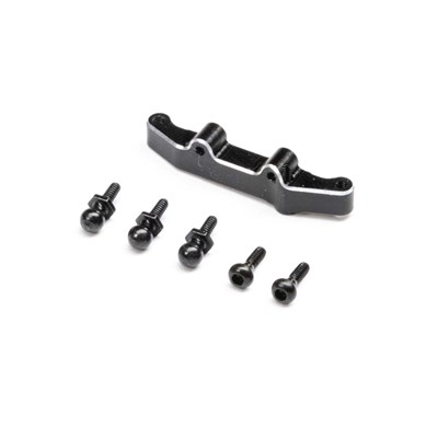 LOS-1986 Aluminum Drag Link Micro-B/T. Bulkhead, Pin Mounts, Steering Rack, og Servo Saver set, inkluderer også Bellcrancks, rack, servo saver, front bulkhead, rear hinge pin mounts, screws, rack bushings, spring og servo saver screw. Laget av plas-
