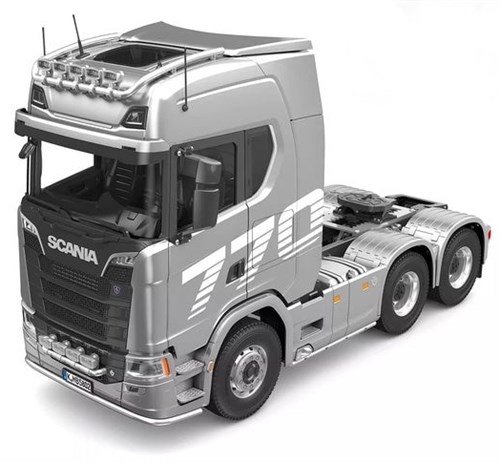Smuk Scania 770S lastbil i skala 1:14 med adskillige metaldele. Lastbilen leveres med en 2-trins gearkasse, difflock-simulerede lys- og lydeffekter samt døre, der kan åbnes og lukkes. Scaniaen vejer hele 4,8 kg og føles som et rigtigt premiumprodukt. Fuldt opladet kan du køre i ca. 1 time.