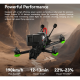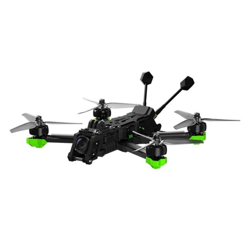 iFlight Nazgul Evoque F5 V3 udstyret med XING2 2207 1750KV motorer, DJI modtager, Borg Mini F7 FC og Borg Mini 60 4-i-1 60A ESC samt DJI O4 Pro Air Unit, denne har også GPS og er en vandtæt version. GPS Rescue er installeret (skal aktiveres). Her får du 4K stabiliseret billede med 155° ultravidvinkel. Dronen har et XT60-stik, armene har også TPU-printede dele i enderne for lidt bedre beskyttelse af dronen. Dronen har en konfigurerbar ramme, du kan enten flyve den som "True-X" eller "Deadcat".