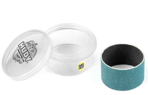 HUDY Sanding Drum - P240 Grain - Ultra Fine. Ekstra slipetrommel i P240 grov korning for bruk med HUDY Professional Alu Sanding Drum #102580. Gir rask materialfjerning ved grovere tilpasninger og leveres i egen praktisk plastboks for trygg oppbevaring.