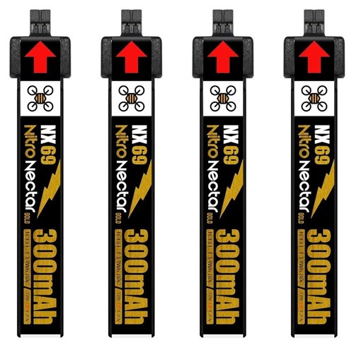 4 stk. 1s 300mah NX69 LiPo batteri med PH2.0 stik. Batteriet er perfekt til mikrodroner, der kræver 1s LiPo. Leveres med 4 cm pigtail NX69 strømkabel.